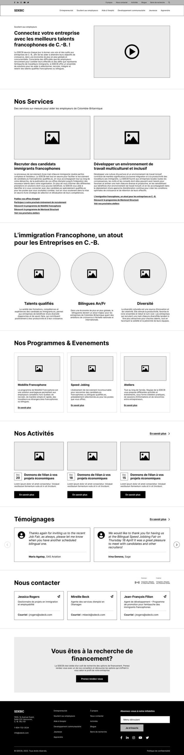 The successful launch of the SDECB website resulted in a visually appealing and user-friendly hub that caters to the specific needs of BC’s Francophone business community. The design emphasizes clarity and accessibility, allowing visitors to quickly find essential resources and programs. By showcasing a strong portfolio of successful projects, the site has effectively built trust with stakeholders and enhanced the organization’s brand image. Launched on schedule, the new site has received exceptional feedback and has significantly elevated SDECB’s digital reach and professional authority.