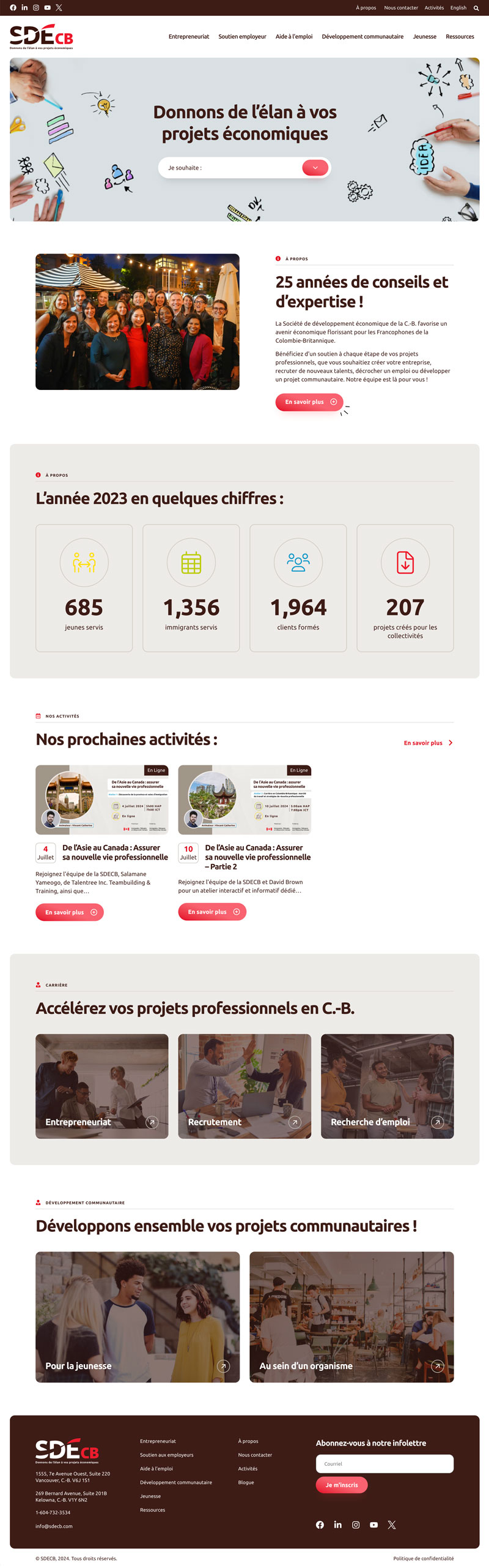 The SDECB provides specialized economic and professional support to Francophone entrepreneurs and organizations across British Columbia. With a mission to help these stakeholders tackle their biggest economic challenges and achieve long-term growth, the SDECB recognized the need to revamp its website and elevate its online presence to reflect its 25 years of expertise and its role as a key community leader.